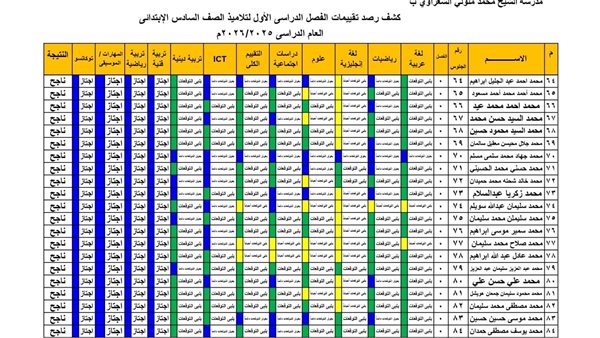 نظام تقييم الصف السادس الابتدائي 202