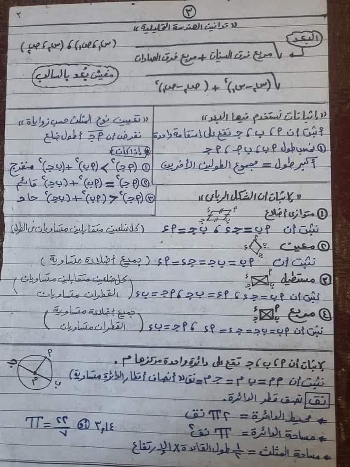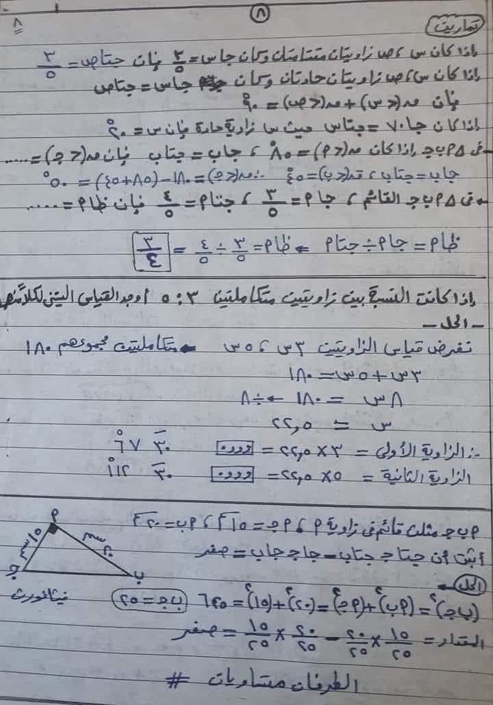 مراجعة ليلة الامتحان فى الهندسة للشهادة الإعدادية