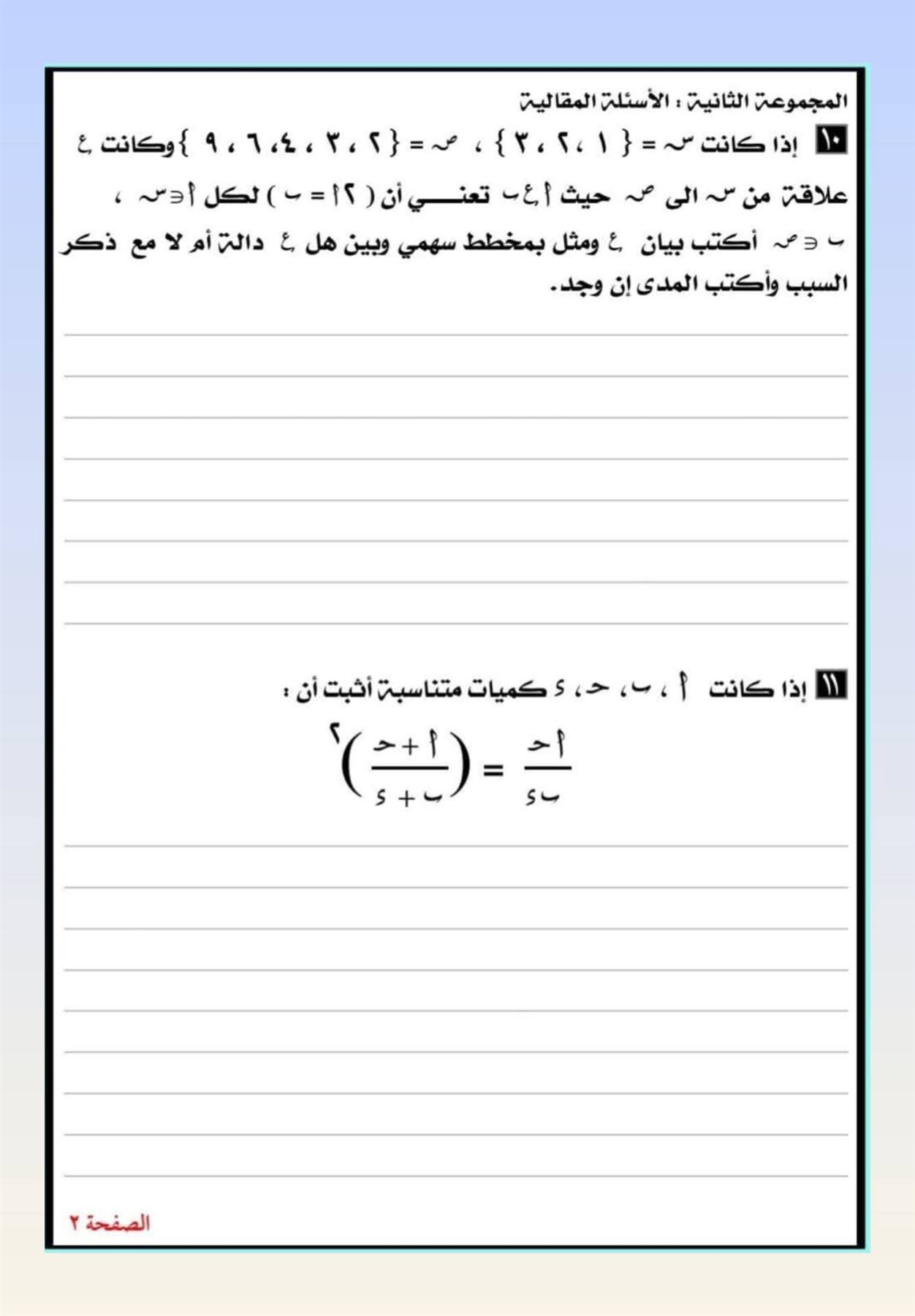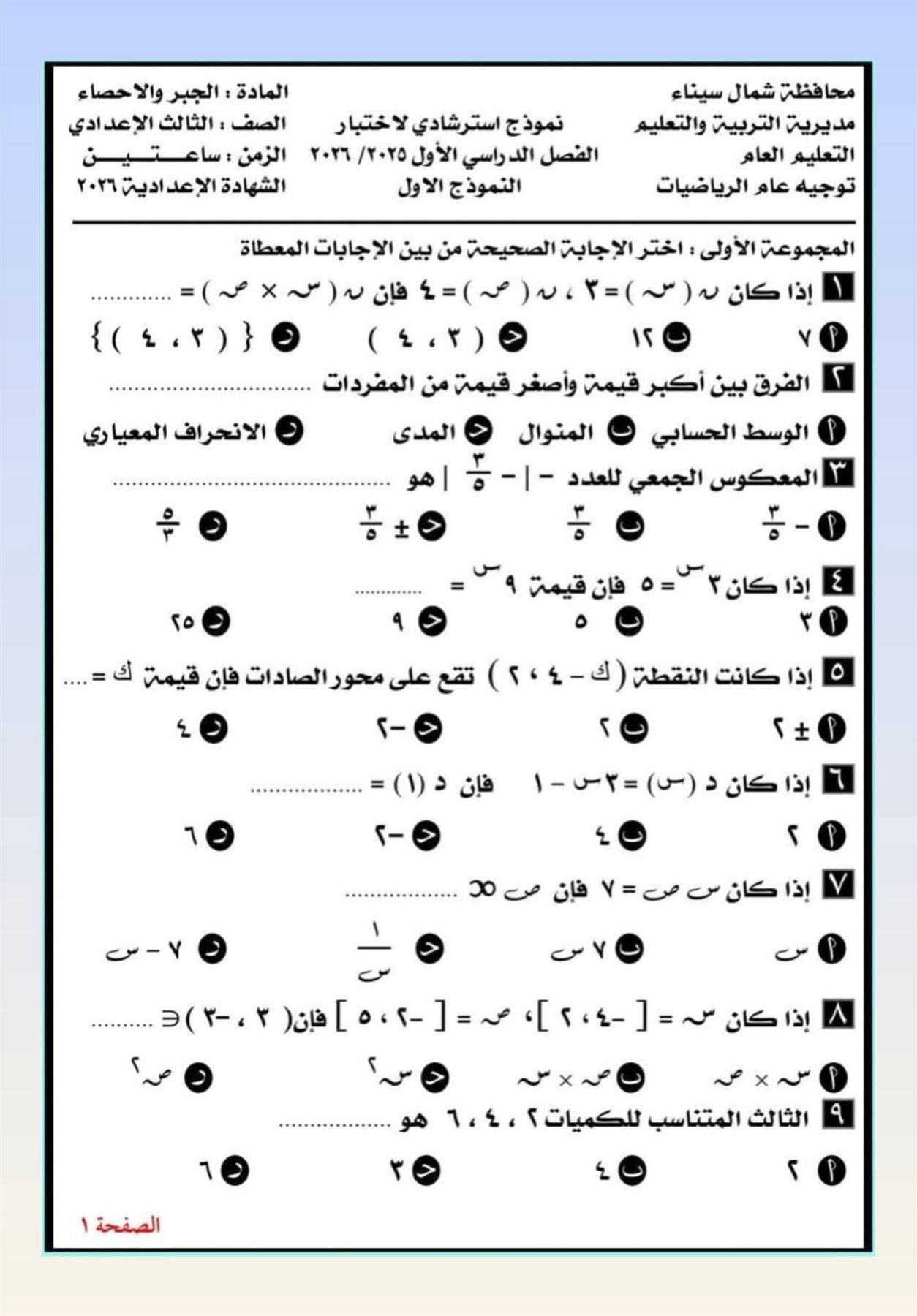 نموذج امتحان الجبر للصف الثالث الإعدادي 2026
