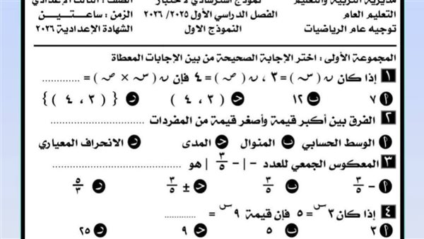 نموذج امتحان الجبر للصف الثالث الإعدادي 2026 الأسترشادي.. راجع على المنهج قبل اللجنة