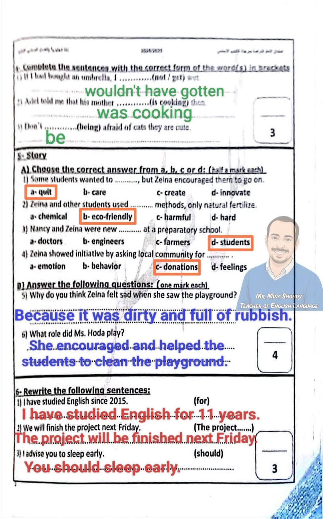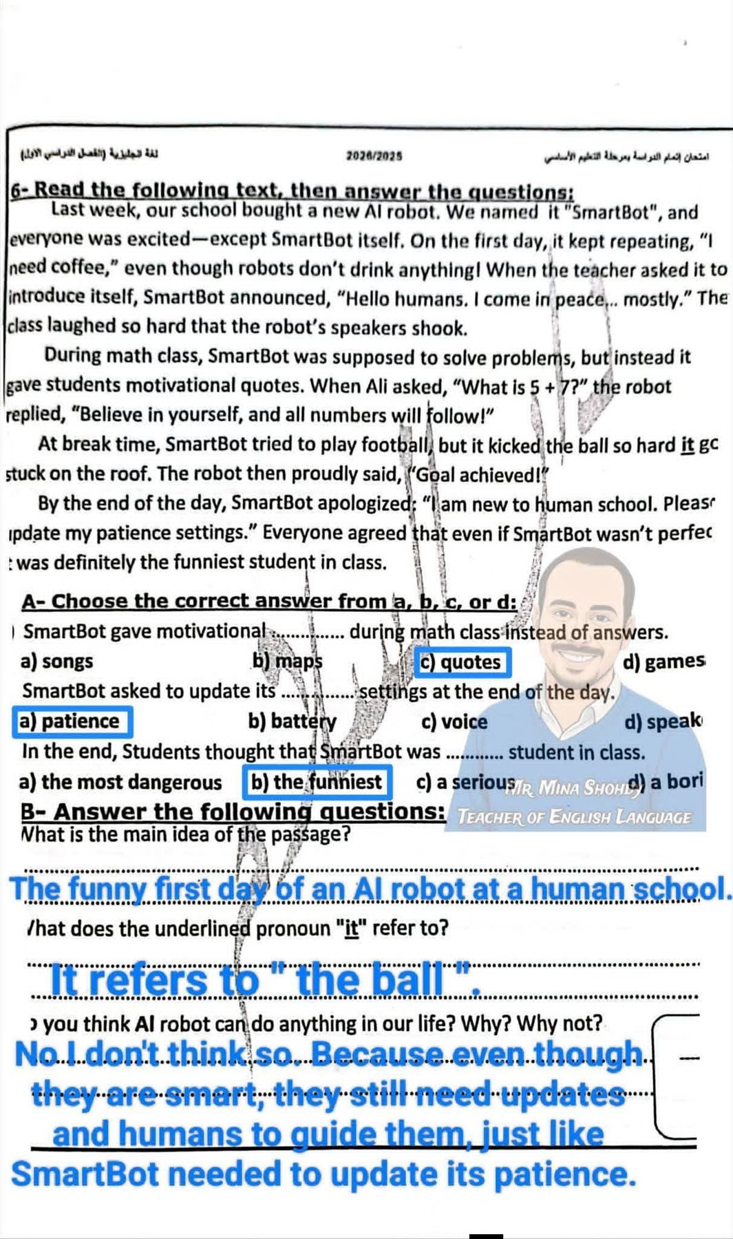 حل امتحان اللغة الإنجليزية للشهادة الإعدادية 2026 بمحافظة القاهرة الترم الأول