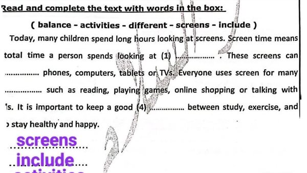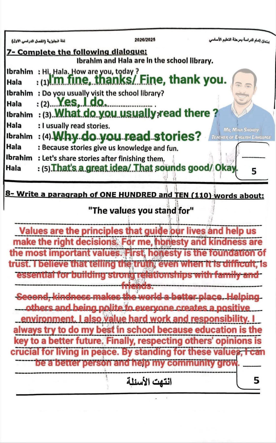 قسم الكتابة القصيرة (Writing) طلب من الطلاب صياغة جمل قصيرة أو إجابات واضحة، لتقييم قدرتهم على التعبير باللغة الإنجليزية.