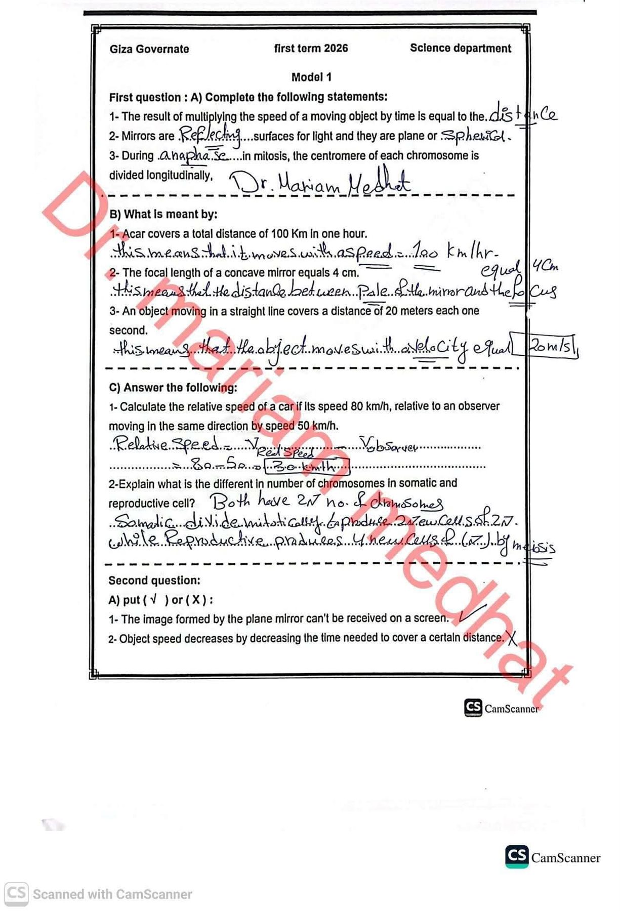 إجابة امتحان Science التجريبي (العلوم) للصف الثالث الإعدادي 2026 محافظة الجيزة