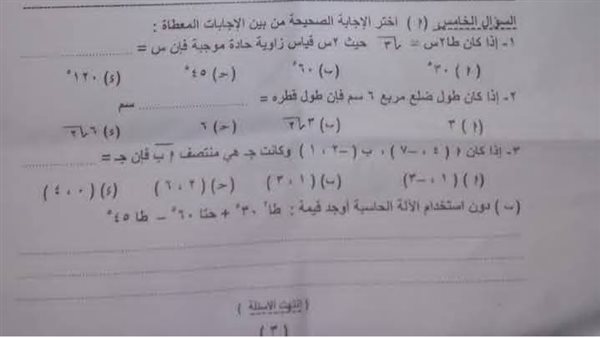 - تسريب امتحان الهندسة