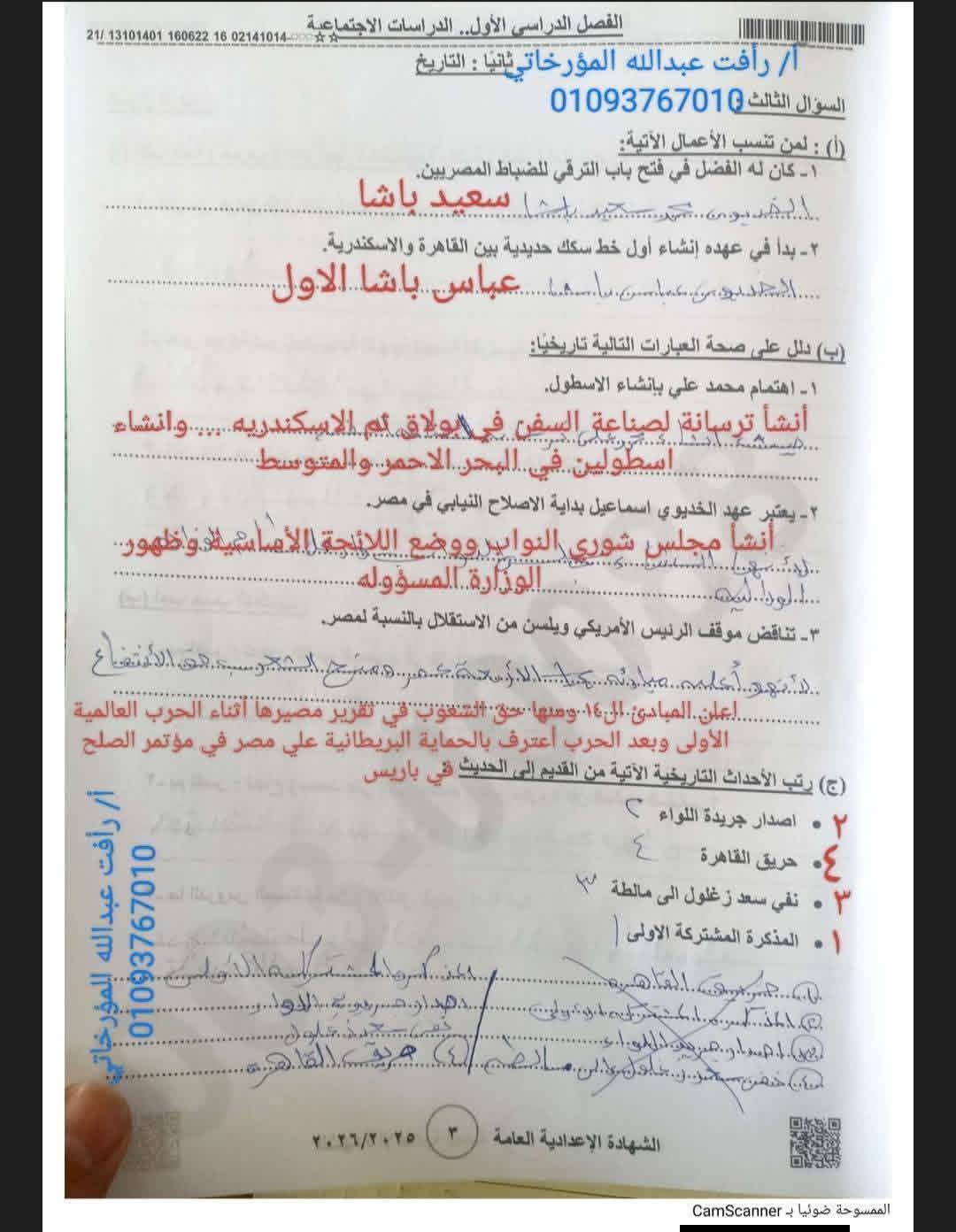 حل امتحان الدراسات الاجتماعية للصف الثالث الإعدادي الترم الأول 2026 محافظة بني سويف.. الأسئلة كاملة