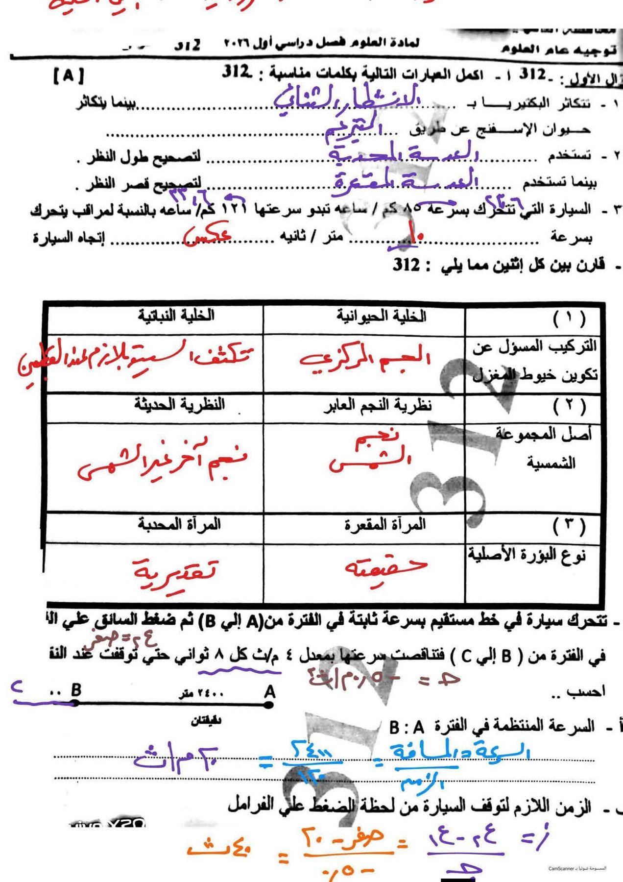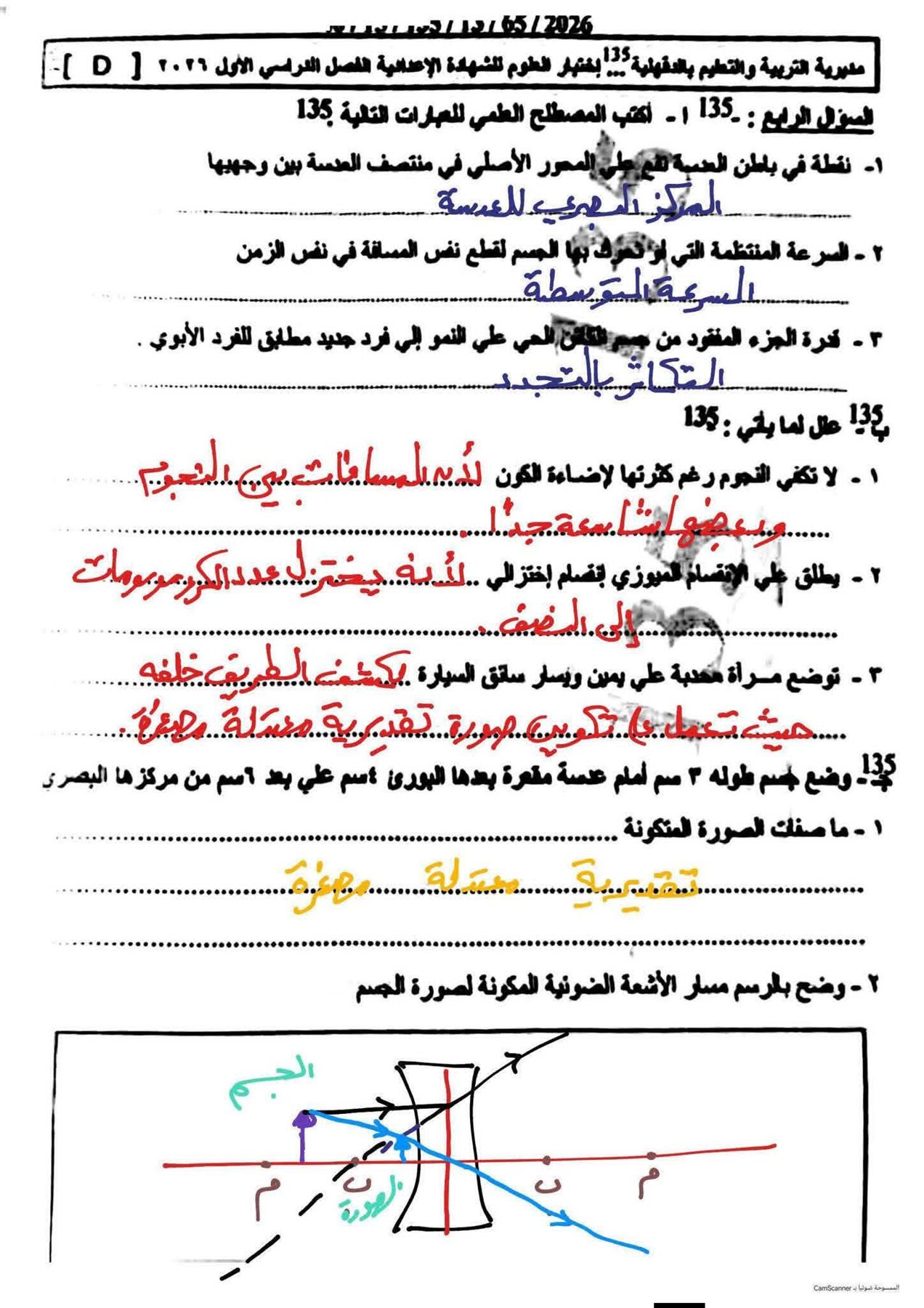 امتحان العلوم الصف الثالث الإعدادي الدقهلية