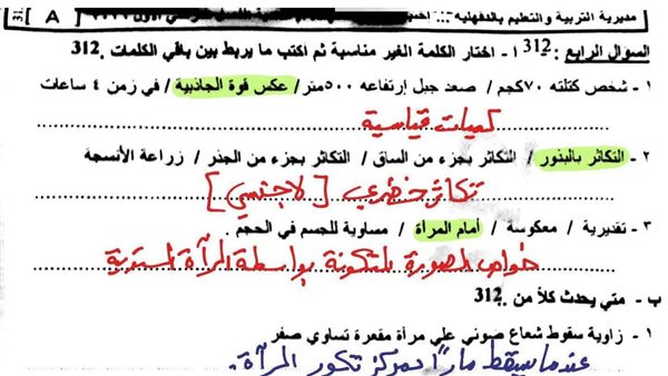 امتحان العلوم للشهادة الإعدادية بالدقهلية