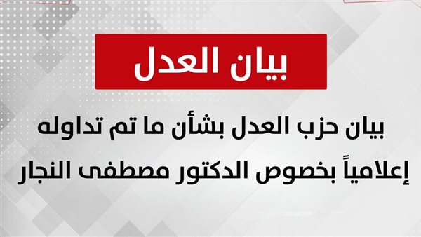 وجدد حزب العدل دعوته إلى ضرورة التعامل مع هذا الملف بحس إنساني وقانوني مسؤول، يراعي حقوق الأسرة ويحترم كرامة الإنسان، ويضع الحقيقة فوق أي اعتبارات أخرى، وصولاً إلى كشف ملابسات ما جرى للدكتور مصطفى النجار بشكل كامل وواضح.