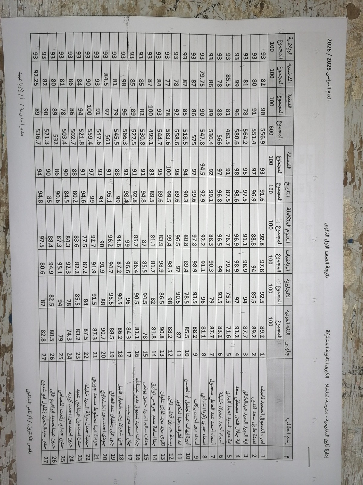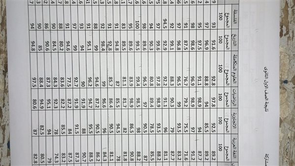 - درجات الصف الأول الثانوي 2026