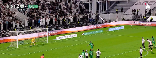 الجماهير على أرضية ملعب إس إتش جي أرينا تفاعلت بشكل كبير مع الهدف الخامس، وسط هتافات وتشجيع مستمر، مع متابعة دقيقة لكل لحظة من المباراة حتى الدقائق الأخيرة. ويستمر الأهلي في تقديم أداء هجومي قوي، مع السيطرة شبه التامة على الكرة، بينما يبقى الشباب في موقف صعب مع مرور الوقت وقرب نهاية المباراة.