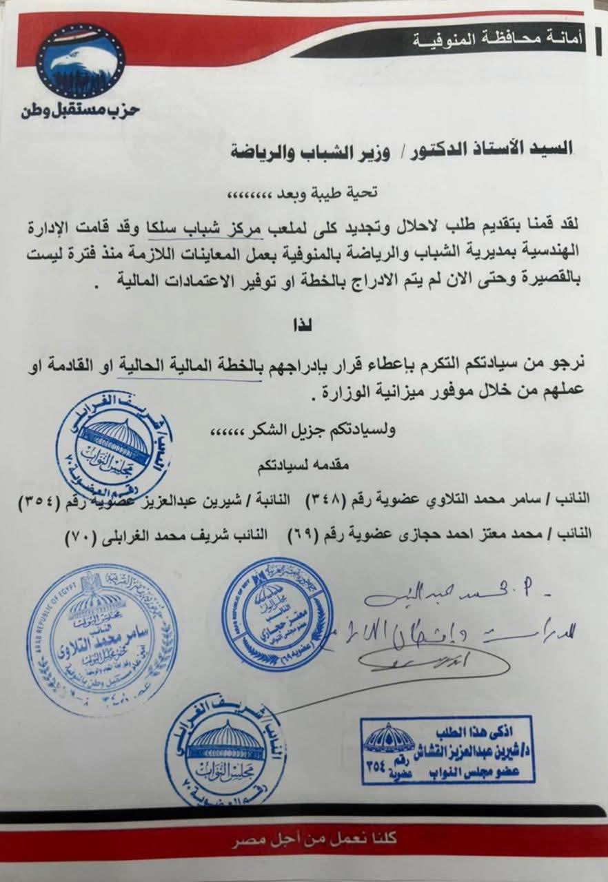 أكدت النائبة شيرين عبدالعزيز، عضو مجلس النواب عن حزب مستقبل وطن، أنه في إطار الاستجابة لمطالب أهالي الدائرة، جرت اليوم معاينة ميدانية من قبل مديرية الشباب والرياضة لعدد من ملاعب مراكز الشباب، وذلك بناءً على الطلب المُقدم إلى وزارة الشباب والرياضة.