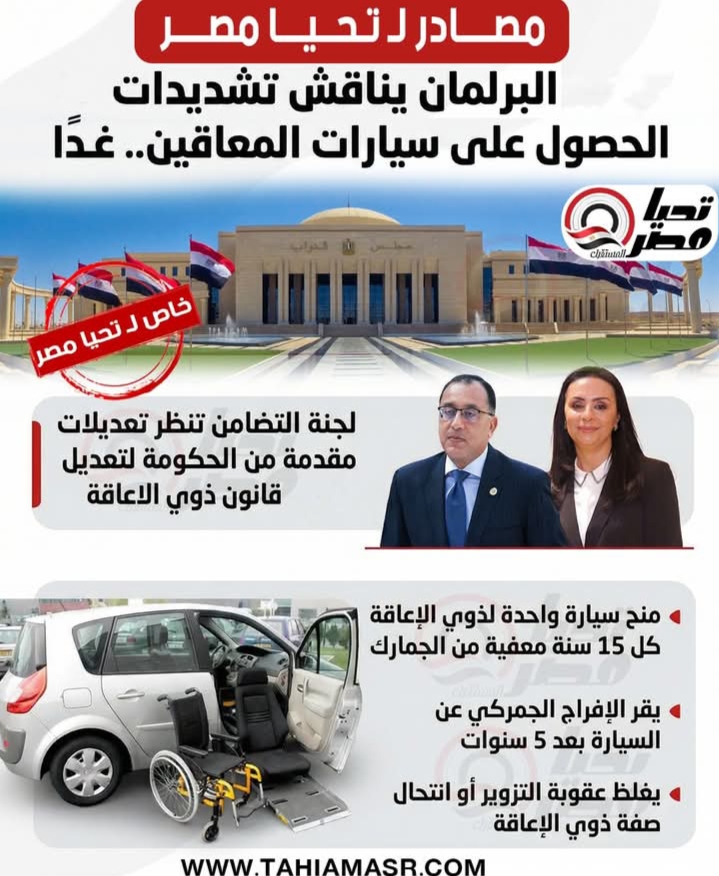 مصادر لـ “تحيا مصر”: البرلمان يناقش غدا تغليظ عقوبة انتحال صفة ذوي الإعاقة
