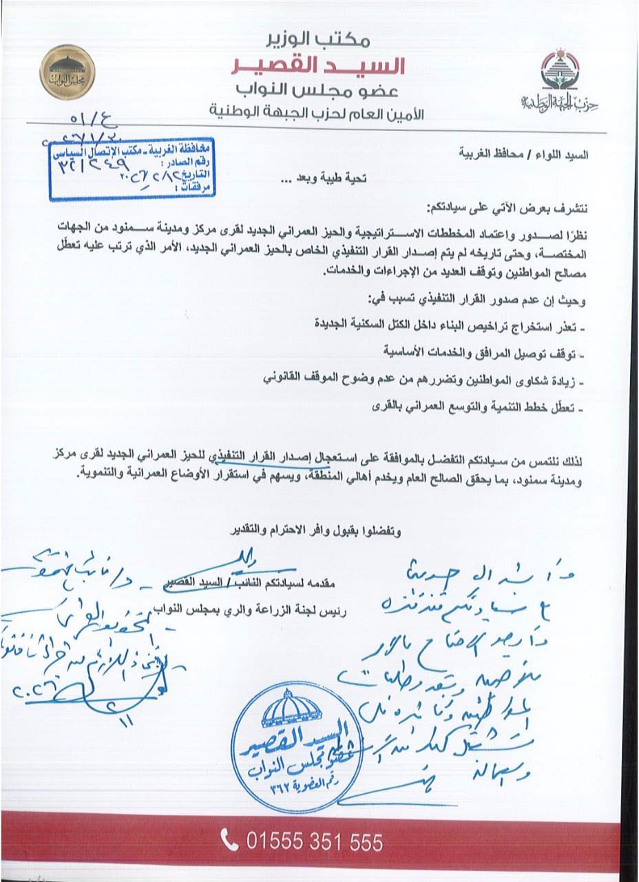 النائب السيد القصير: اعتماد الأحوزة العمرانية لقرى سمنود وجارٍ إعداد المخططات التفصيلية تمهيدًا للتنفيذ