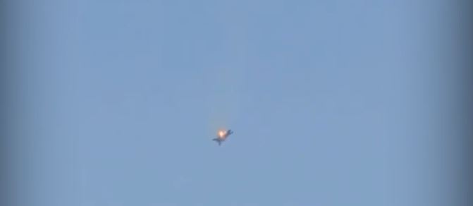 فيما نشرت صحيفة التليجراف، لقطات الفيديو طائرة أمريكية من طراز إف-15 إي سترايك إيجل وهي تهبط بشكل حلزوني بينما تلتهم النيران محركها على بعد ستة أميال من قاعدة علي السالم الأمريكية.