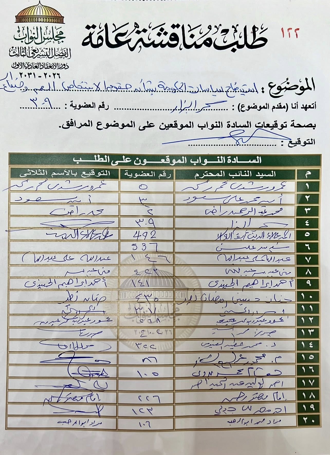 ويهدف طلب المناقشة إلى مراجعة السياسات والخدمات الحكومية المقدمة لهم، والعمل على إزالة التحديات التي تعيق حصولهم على حقوقهم الكاملة في التعليم، والصحة، والتواصل، والخدمات العامة.