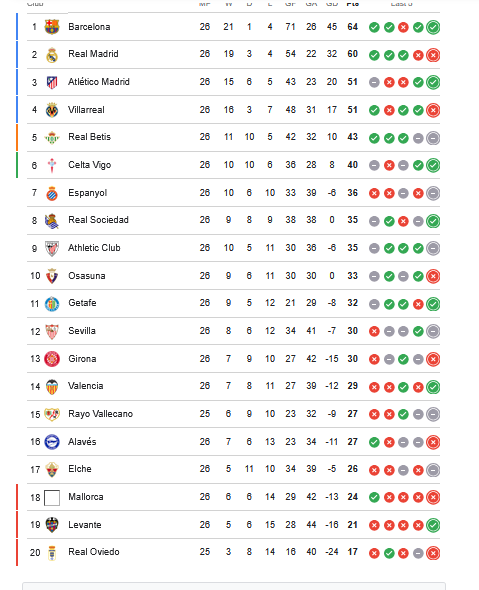 - ترتيب فرق الليجا بعد الجولة 26