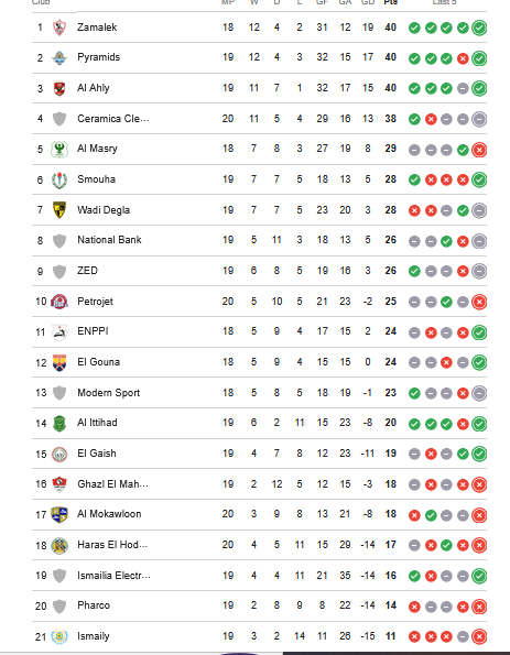 - جدول ترتيب الدوري المصري بعد الجولة 21