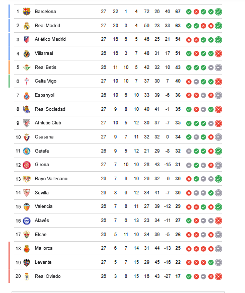 - ترتيب الدوري الإسباني