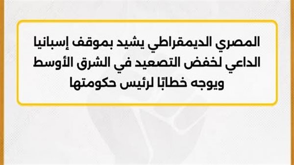 المصري الديمقراطي يشيد بموقف إسبانيا الداعي لخفض التصعيد في الشرق الأوسط ويوجه خطابًا لرئيس حكومتها