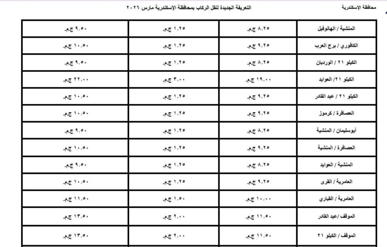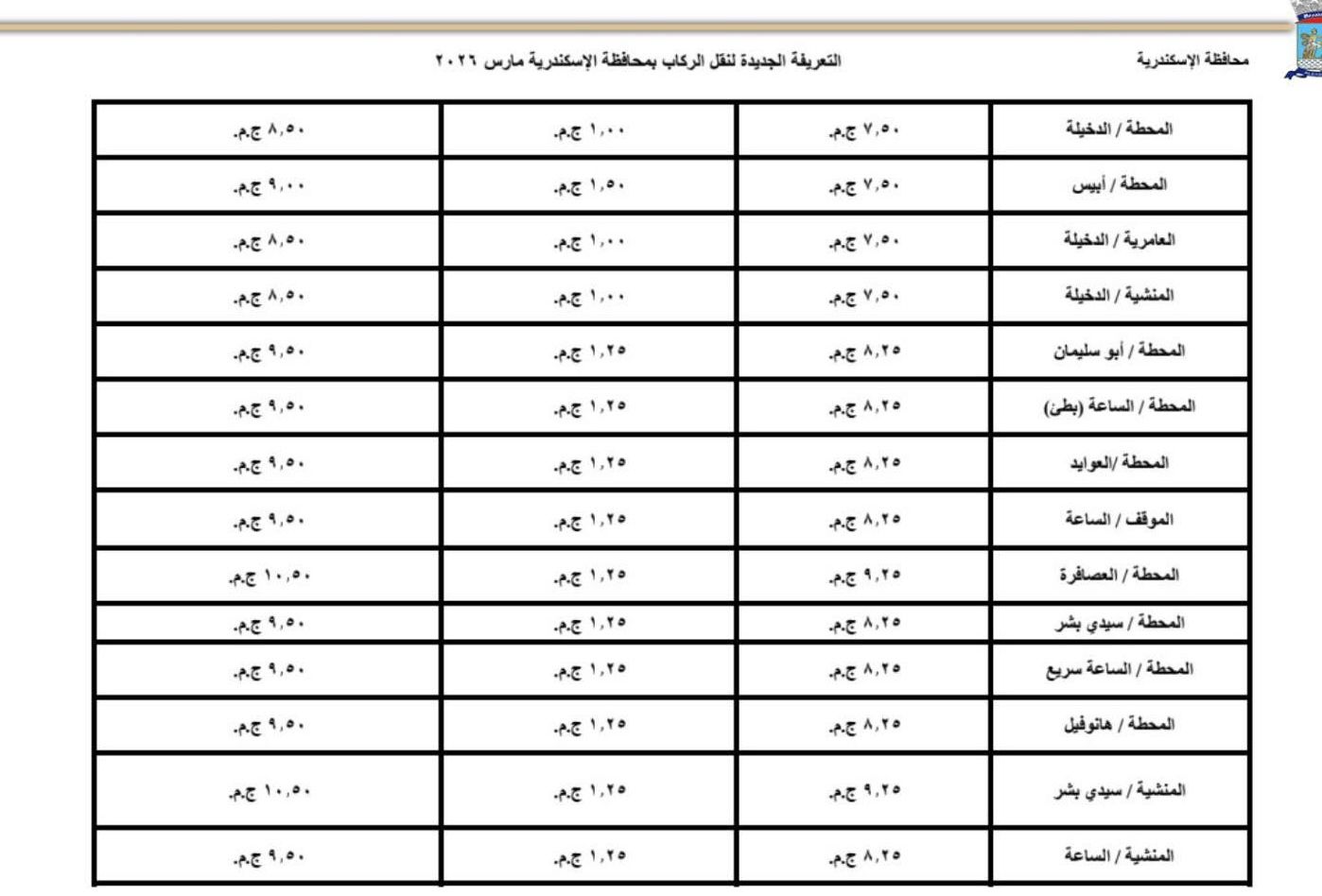 وشدد محافظ الإسكندرية إدارة مشروع محطات الركاب والانتظار، بالإلتزام بنشر التعريفة الجديدة بالمواقف والمحطات المختلفة وتعليقها فى مكان ظاهر. وإلزام سائقي النقل بوضع ملصقات بالتعريفة الجديدة لكل خط سير .