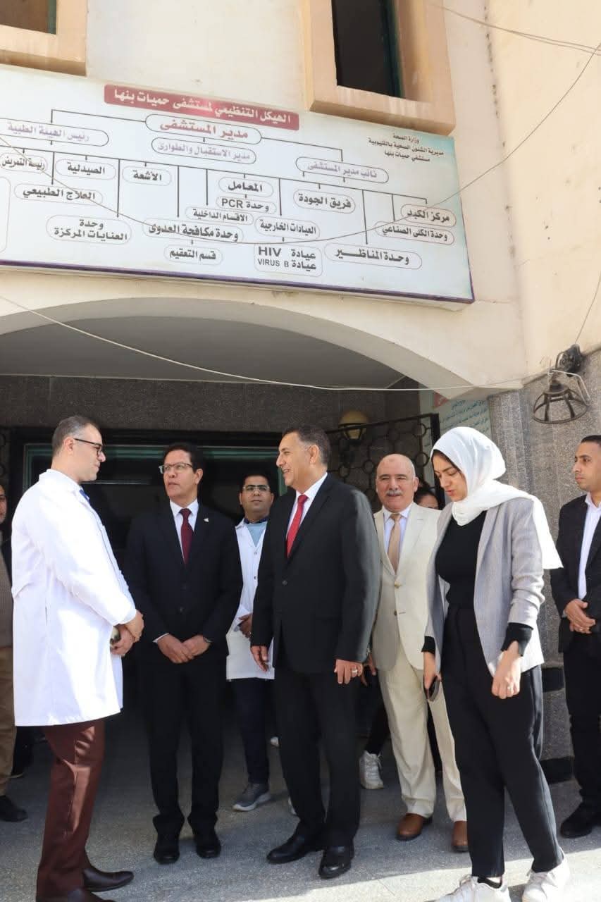 واستهل الجولة بزيارة مستشفى الحميات، ثم توجه إلى بنها الجامعي، قبل أن يختتم جولته داخل مستشفى التأمين الصحي، في إطار خطة المحافظة لدعم خدمات صحية القليوبية خلال أيام العيد.