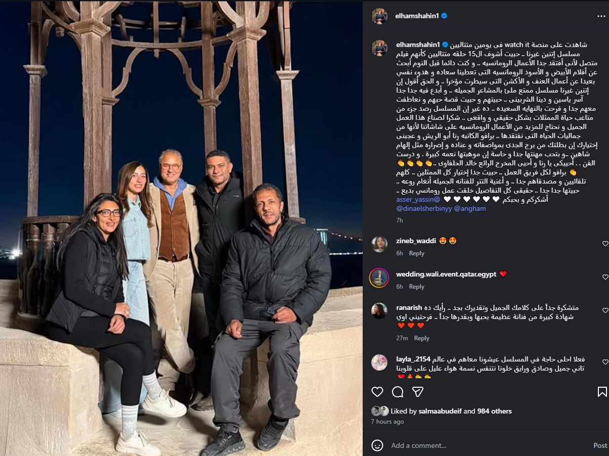 وكتبت الفنانة إلهام شاهين، منشورا، تشيد من خلاله بمسلسل اتنين غيرنا، وفقا لما رصده موقع تحيا مصر، وذلك عبر صفحته الرسمية على موقع التواصل الاجتماعي إنستجرام، قالت فيه: شاهدت على منصة watch it في يومين متتاليين مسلسل اتنين غيرنا، حبيت أشوف الـ15 حلقه متتاليين كأنهم فيلم متصل لأني أفتقد جدا الأعمال الرومانسية، وكنت دائما قبل النوم أبحث عن أفلام الأبيض والأسود الرومانسية التي تعطينا سعادة وهدوء نفسي بعيداً عن أعمال العنف والأكشن التي سيطرت مؤخراً.