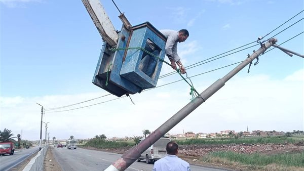 ميل ثلاثة أعمدة إنارة بطريق سنورس – القاهرة الفيوم الصحراوي بسبب شدة الرياح