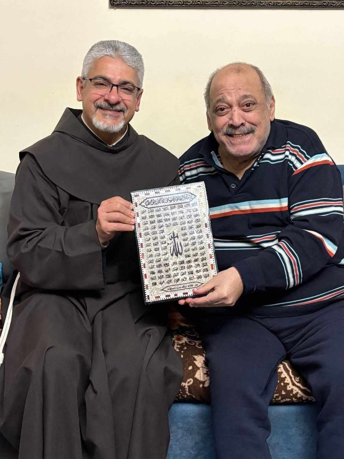 بعد أزمته الصحية.. الأب بطرس دانيال يزور ضياء الميرغني ويهديه لوحة بـ أسماء الله الحسنى