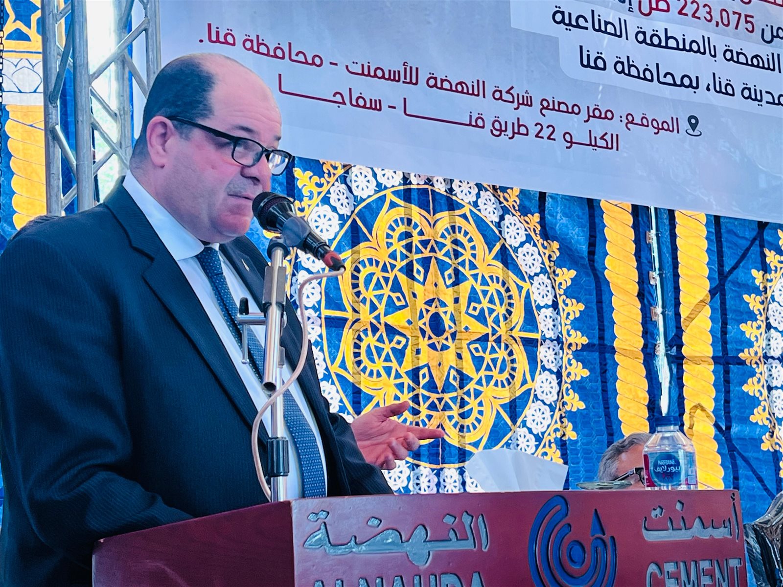 وذلك بحضور المهندس شريف هدارة، وزير البترول الأسبق، والمهندس محمد علي عبادي، رئيس الهيئة العامة للمثلث الذهبي، والدكتور مهندس مجدي توفيق، رئيس مجلس الإدارة والعضو المنتدب لشركة أسمنت النهضة،