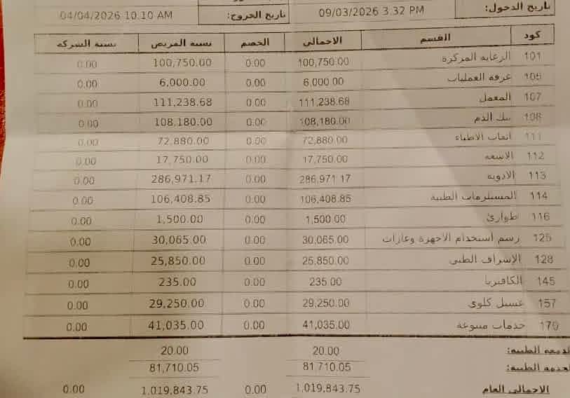وأوضحت أن الصدمة الأكبر جاءت عند الاطلاع على فاتورة العلاج، مؤكدة أن الأسعار الواردة بها «غير منطقية تمامًا» مقارنة بمستوى الخدمة المقدمة، وتثير العديد من علامات الاستفهام.