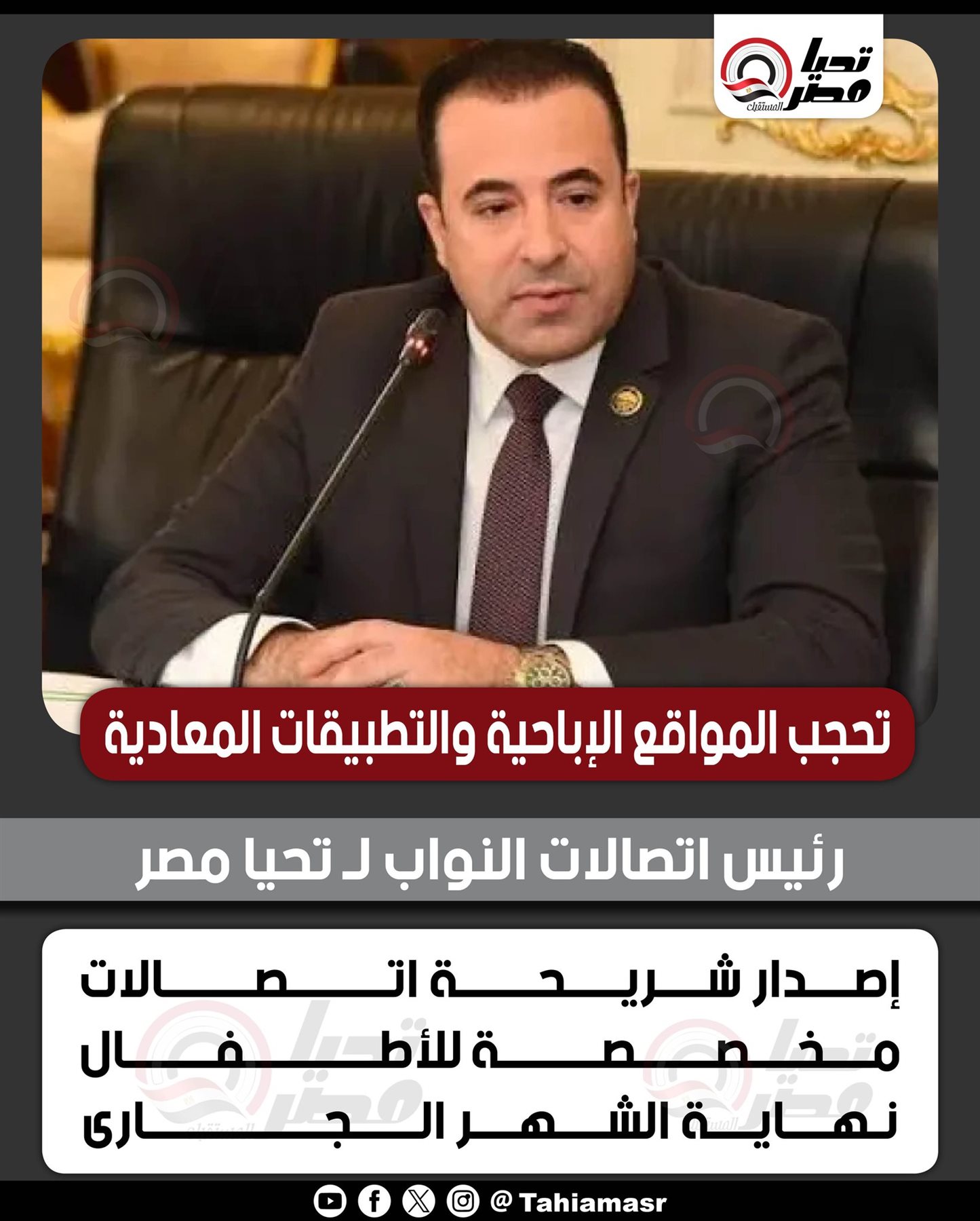 تحجب المواقع الإباحية والتطبيقات المعادية.. رئيس اتصالات النواب لـ تحيا مصر: إصدار شريحة اتصالات مخصصة للأطفال نهاية الشهر الجاري