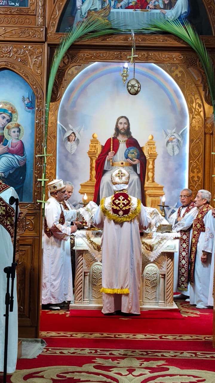 "تيجان وصلبان من السعف والزيّ الملوكي".. بهجة أحد الشعانين تزين كنيسة الأنبا بيشوي ببورسعيد