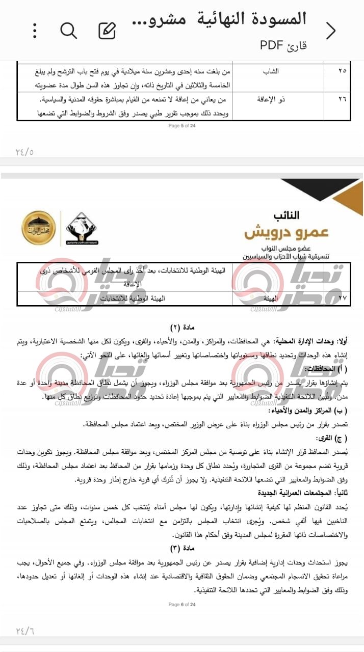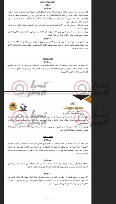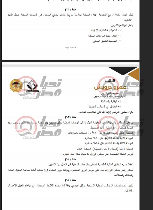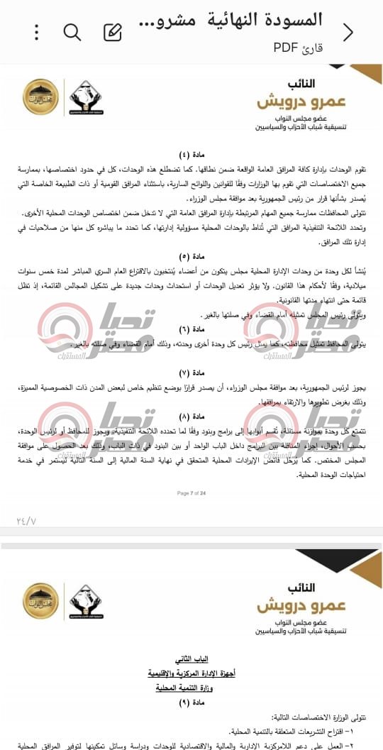 خاص| تحيا مصر ينشر نص مشروع قانون الإدارة المحلية المقدم من النائب عمرو درويش