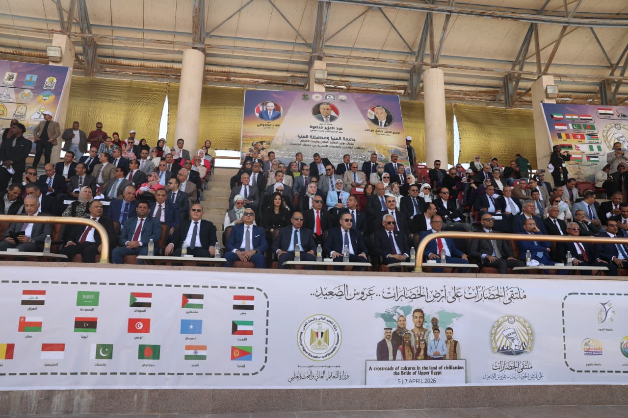 على هامش اليوبيل الذهبي لجامعة المنيا.. وزير التعليم العالي والمحافظ المنيا ورئيس الجامعة يشهدون ختام فعاليات "ملتقى الحضارات