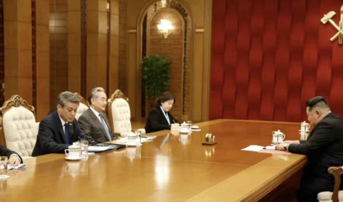 وتوجت زيارة وانغ يي إلى كوريا الشمالية بلقاء مع الزعيم كيم جونغ أون، حيث نقل وزير الخارجية الصيني تحيات الرئيس شي جين بينغ الودية وتهانيه الحارة بنجاح المؤتمر التاسع لحزب العمال الكوري والدورة الـ15 للجمعية الشعبية العليا لكوريا الشمالية،معرباً عن ثقة الصين الراسخة في قدرة الشعب الكوري على تحقيق إنجازات جديدة في مسيرته الاشتراكية تحت قيادة كيم جونغ أون.