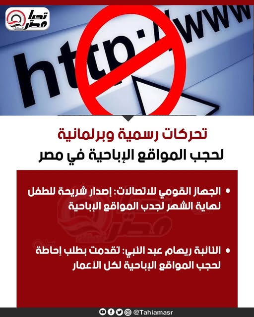 شهدت المرحلة الأخيرة تحركات برلمانية جادة لحجب جميع المواقع الأباحية داخل مصر، وذلك لحماية المجتمع المصري من تلك المواقع وحماية القيم والحفاظ على القيم الاخلاقية، إضافة إلى حماية الاطفال من النشء ونشر الوعي داخل المجتمع.