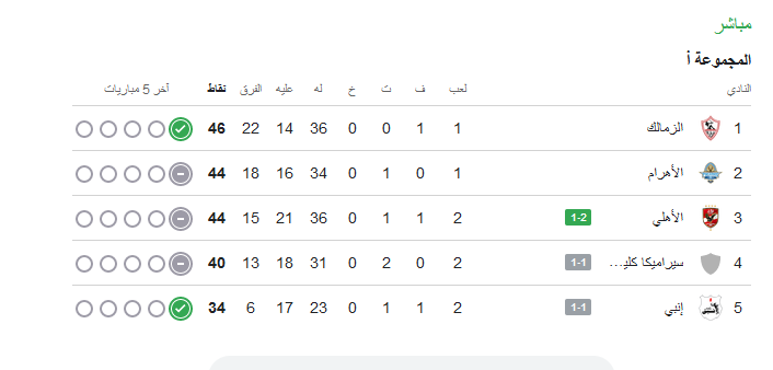 - ترتيب الدوري بعد فوز الأهلي على سموحة
