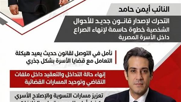 النائب أيمن حامد: التحرك لإصدار قانون جديد للأحوال الشخصية خطوة حاسمة لإنهاء الصراع داخل الأسرة المصرية