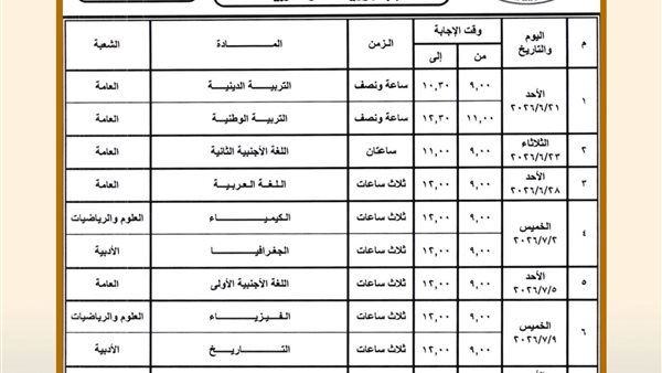 ننشر جدول امتحانات الثانوية العامة 2026 "النظام الجديد" لجميع الشعب