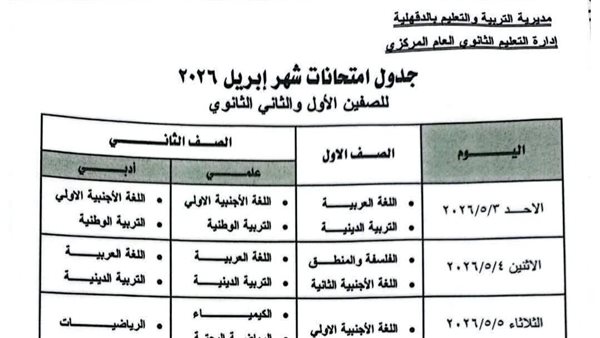 - جدول امتحان شهر أبريل 2026 محافظة الدقهلية