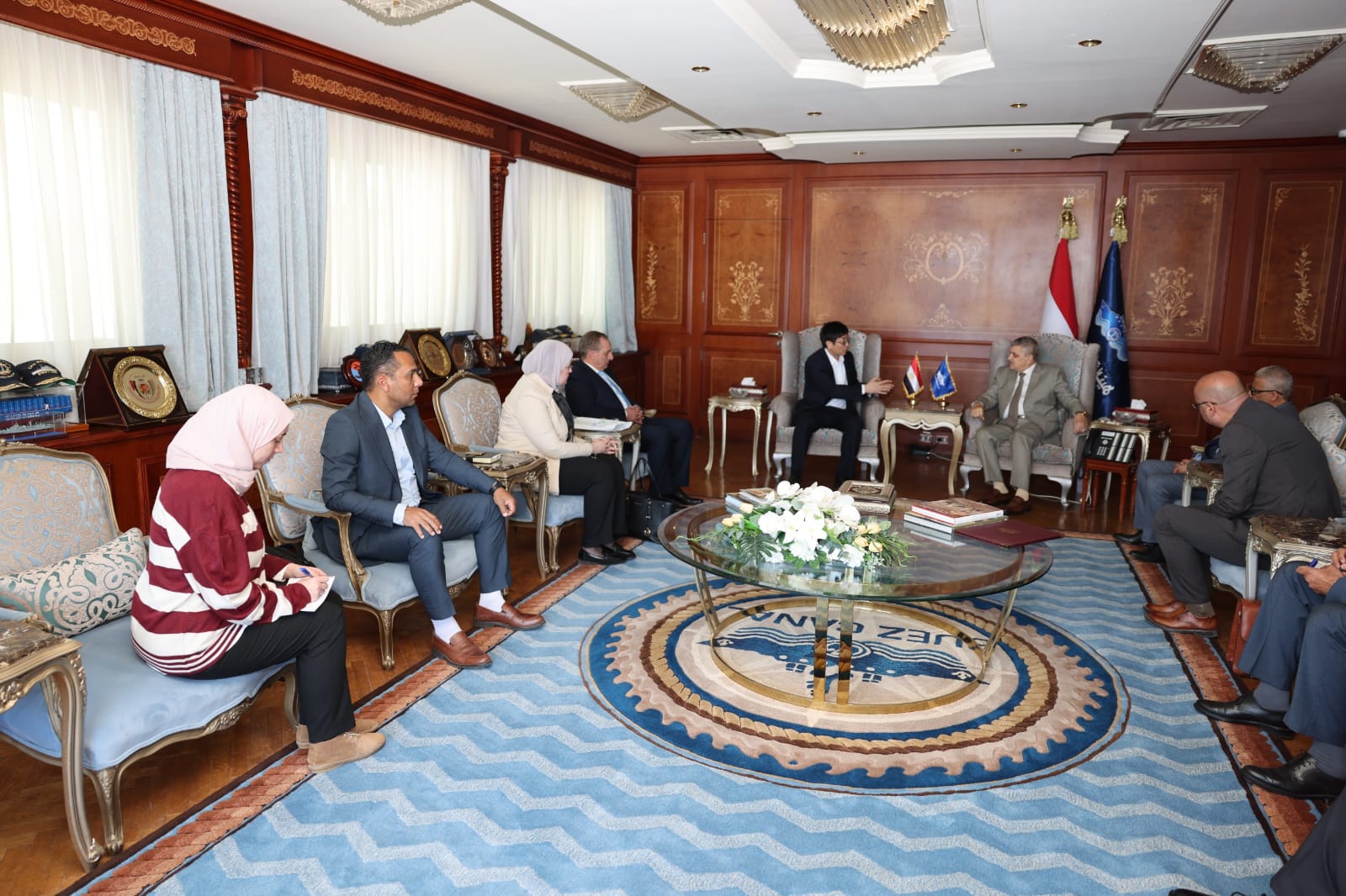 عقد الفريق أسامة ربيع رئيس هيئة قناة السويس لقاءً مع السيد واي جيان تشن نائب رئيس مجلس إدارة شركة تيدا مصر للاستثمار، والمدير العام لشركة تيدا الصين وأفريقيا، لبحث سبل تعزيز التعاون المشترك، وذلك بحضور السيدة نهلة محمود عماد الرئيس التنفيذي للشركة، وعدد من قيادات الهيئة، بمبنى الإرشاد بمحافظة الإسماعيلية.