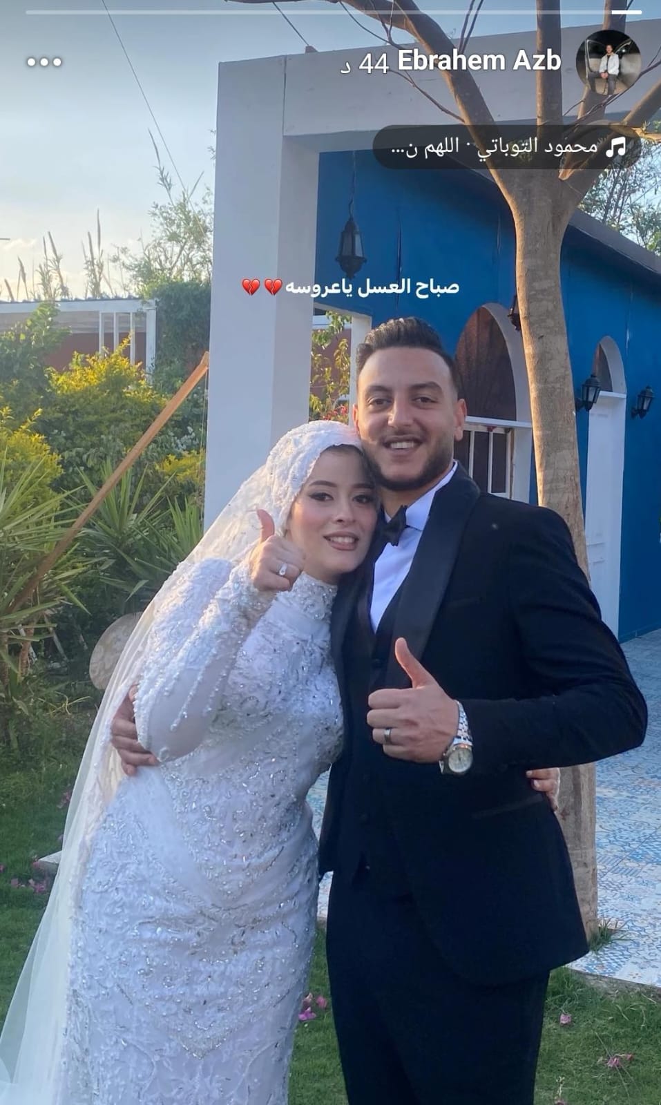 نشر عريس الشرقية التي توفيت زوجته "فرح" بعد ساعات من انتهاء حفل زفافهما داخل إحدي قاعات مركز أولاد صقر، عبر خاصية الاستوري على صفحته الشخصية على الفيس بوك صباح اليوم صورة تجمعه مع زوجته ليلة فرحمها.