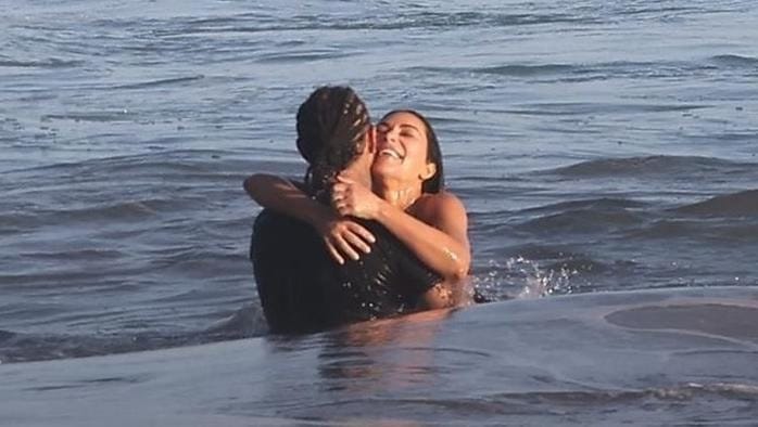 الفيديوهات والصور التي انتشرت أظهرت الثنائي وهما يتبادلان القبلات والعناق داخل مياه المحيط الهادئ، في لقطات عفوية أكدت ما كان يشاع منذ أسابيع حول طبيعة علاقتهما.
