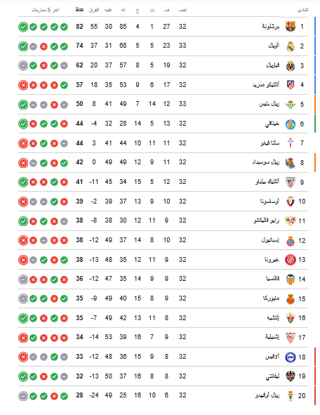 - جدول ترتيب الدوري الاسباني