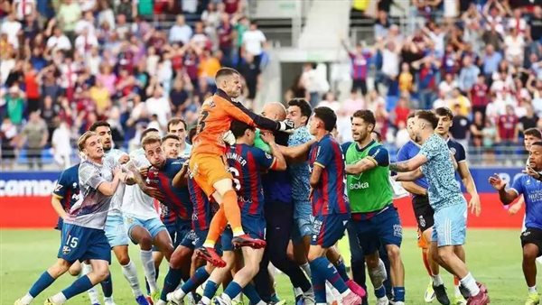 وجاءت المباراة التي أقيمت ضمن منافسات الدوري الإسباني الدرجة الثانية متوترة حتى اللحظات الأخيرة، في ظل تقدم هويسكا بهدف دون رد، قبل أن تنفجر الأوضاع داخل أرض الملعب.
