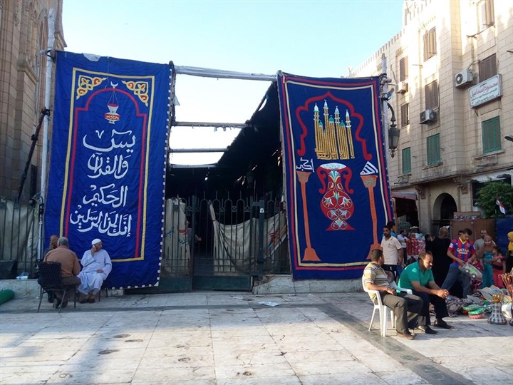 وقام الصائمون بالدعاء أثناء أذان المغرب، وتناولوا الطعام علي سماء الاناشيد والتواشيح الدينية التي تشتهر بها منطقة "الحسين" الأثرية.
