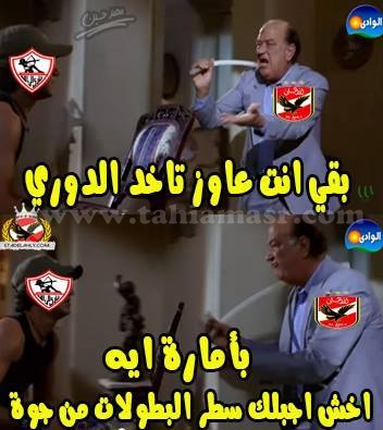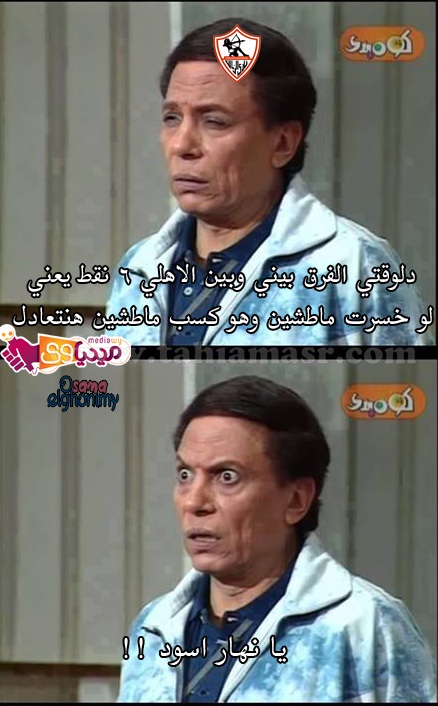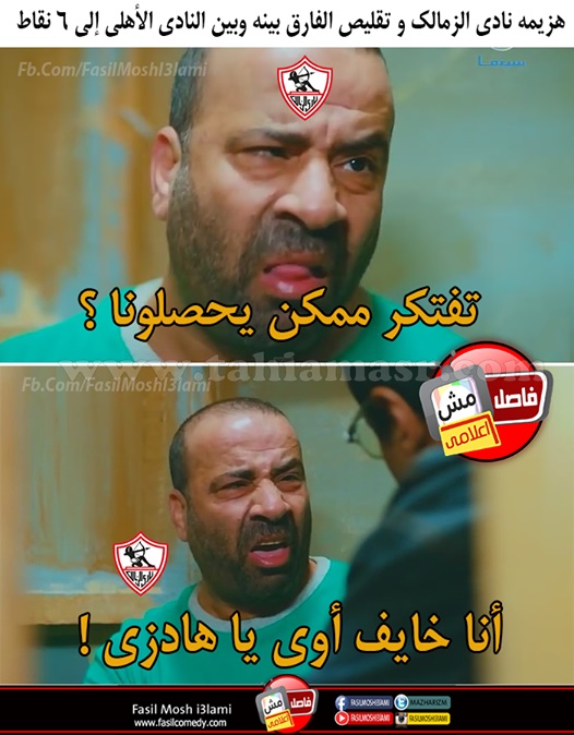 تداول مستخدمي مواقع التواصل الإجتماعي«فيس بوك، تويتر» عدد من الكوميك الساخرة من هزيمة نادي الزمالك أمام نادي مصر المقاصة بنتيجة هدفين لهدف في المبارة المؤجلة بين الفريقين من الأسبوع 31 من الدوري العام.