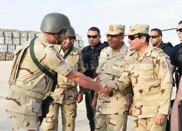 وكان الرئيس عبدالفتاح السيسي، قد قام صباح اليوم السبت، بتفقد جنود القوات المسلحة بشمال سيناء للإطمئنان عليهم، وتحفيزهم في حربهم علي الإرهاب.