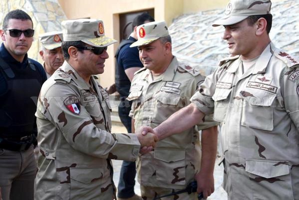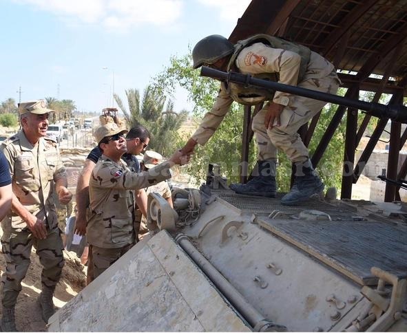 وكان الرئيس عبدالفتاح السيسي، قد قام صباح اليوم السبت، بتفقد جنود القوات المسلحة بشمال سيناء للإطمئنان عليهم، وتحفيزهم في حربهم علي الإرهاب.