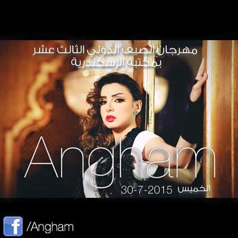 تحيي الفنانة "أنغام" حفل غنائي الخميس الموافق 30 يوليو في مهرجان الصيف الدولي الثالث عشر بمكتبة الأسكندرية ومن المقرر أن تقدم أنغام مجموعة من أعمالها و أغانيها الشهيرة خلال الحفل .